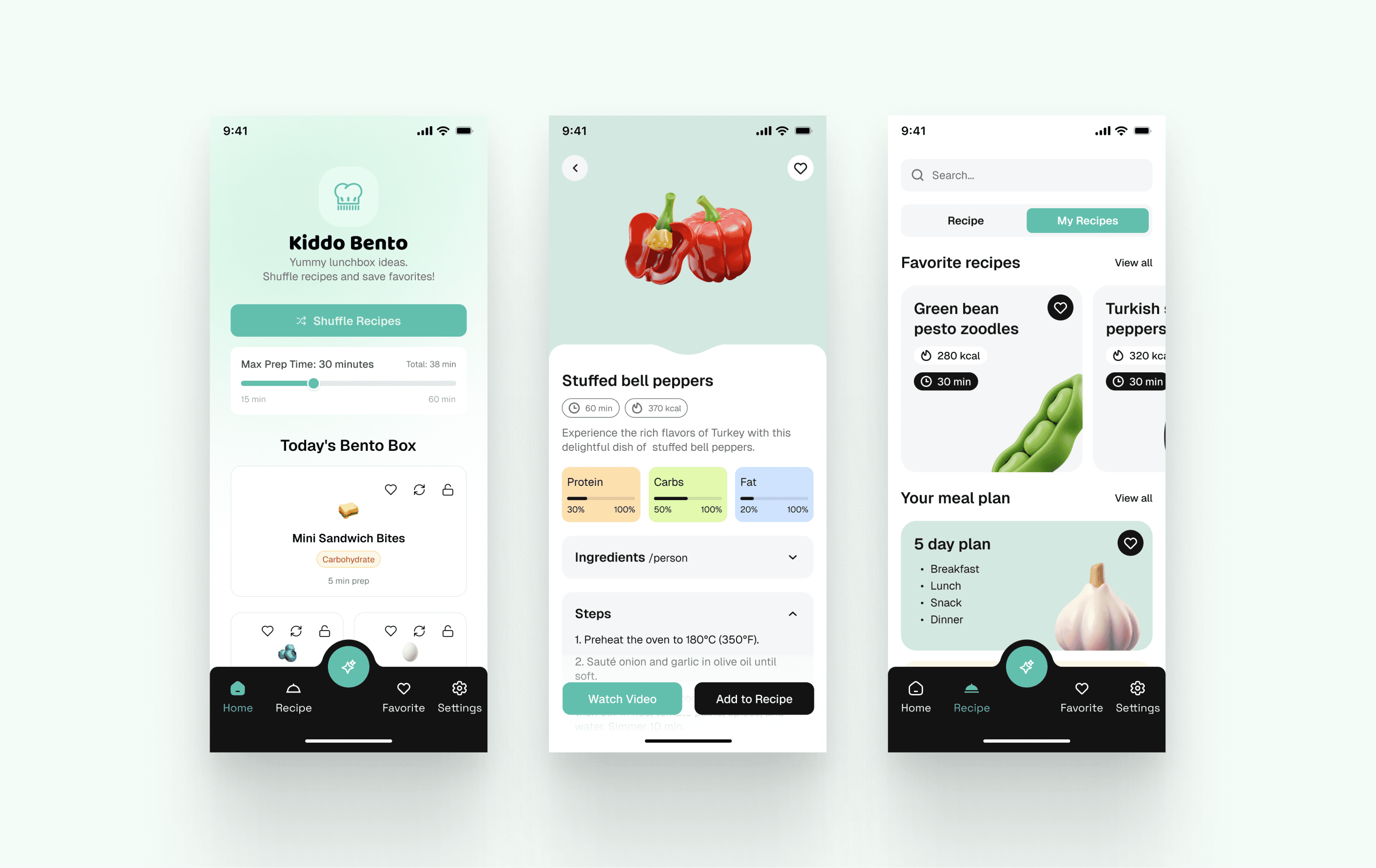 Mobile App of AI Generating time-saving lunchbox recipes for busy parents.