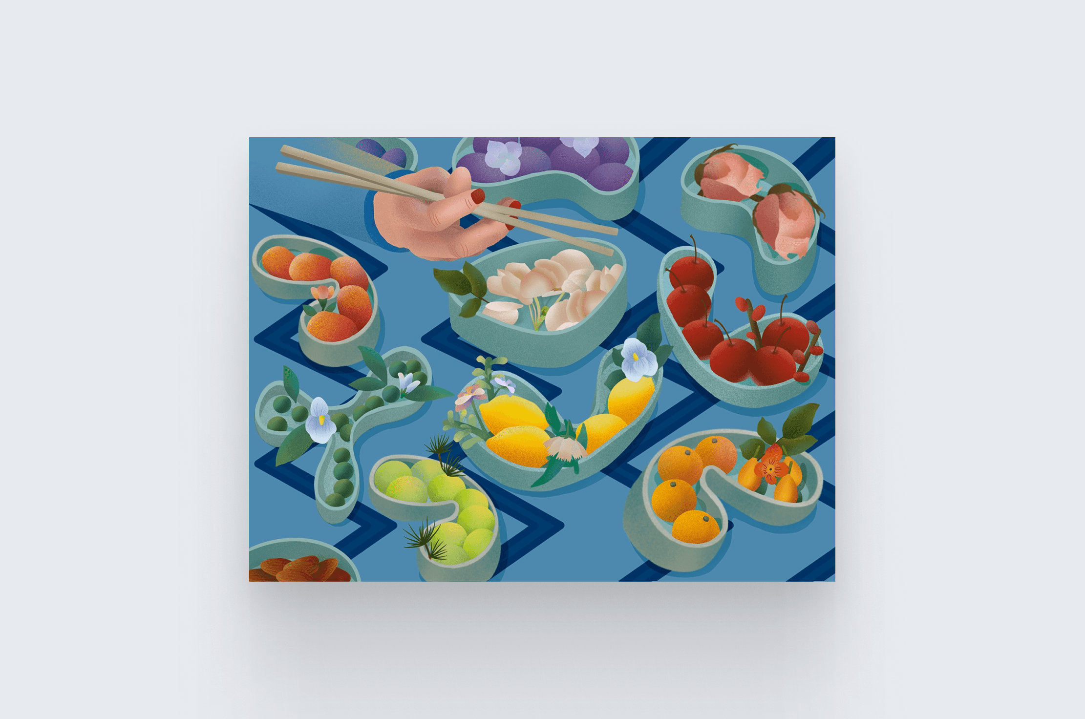 Through the lens of contemporary Eastern aesthetics, each illustration transforms dining into a poetic act of coexisting with the natural world.