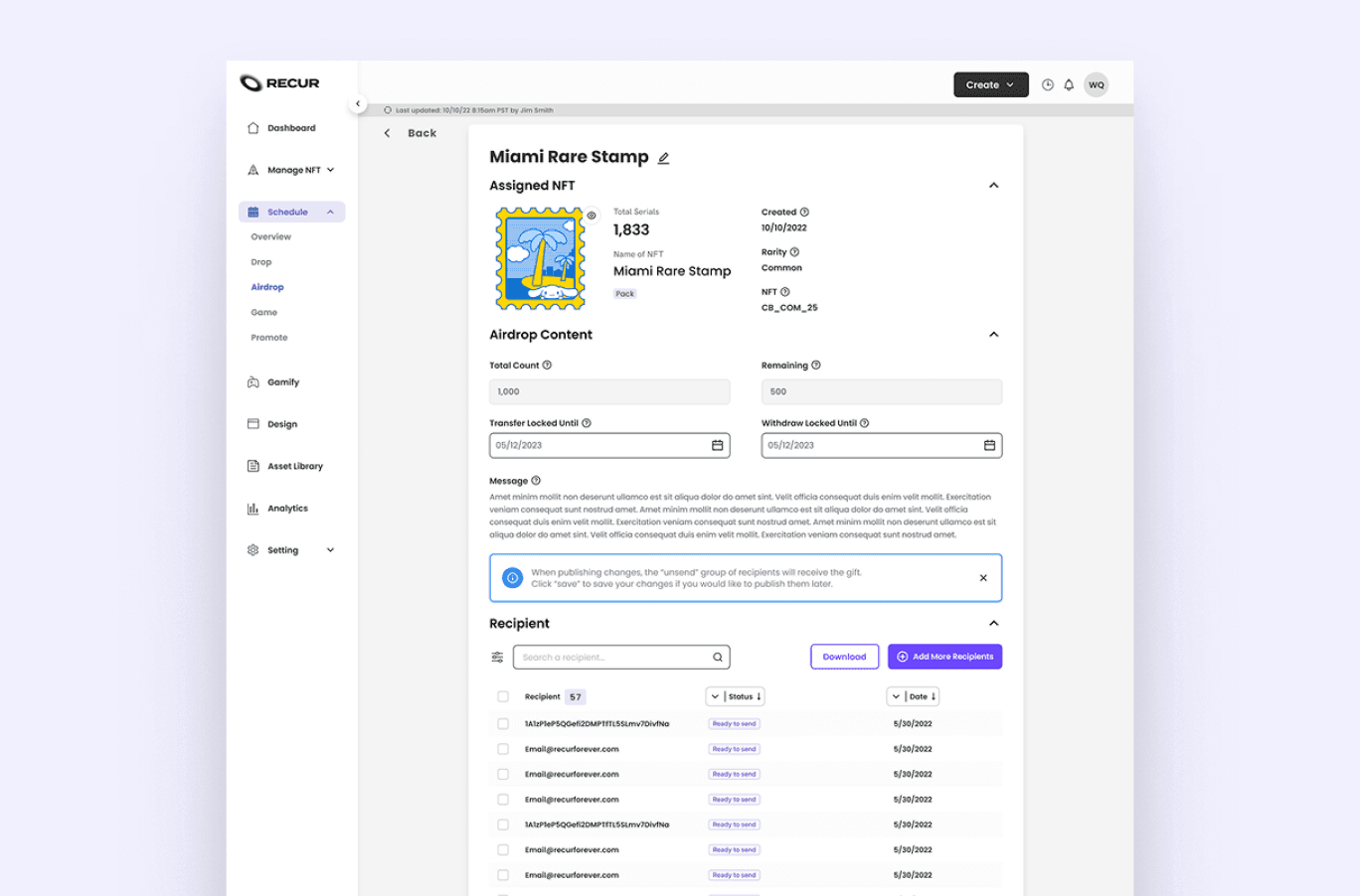 RECUR Builder is a self service platform that enables businesses and individual creators to create, distribute, and manage NFTs with seamless marketplace integration. Built as a no code solution, it lowers the technical barrier to launching and operating NFT products at scale.